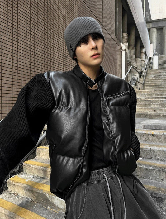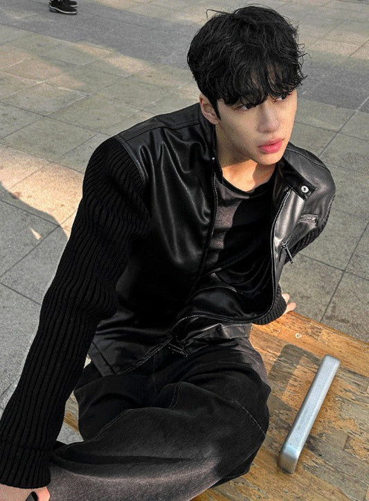 Deep Black Knit Leather Padding