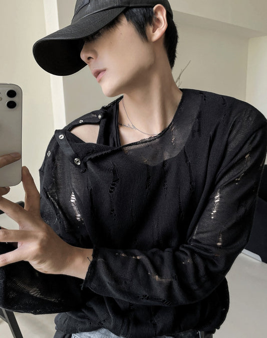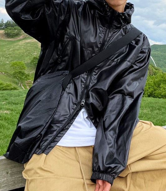 Dyed Distressed Mesh Hooded Zip-Up Jacket