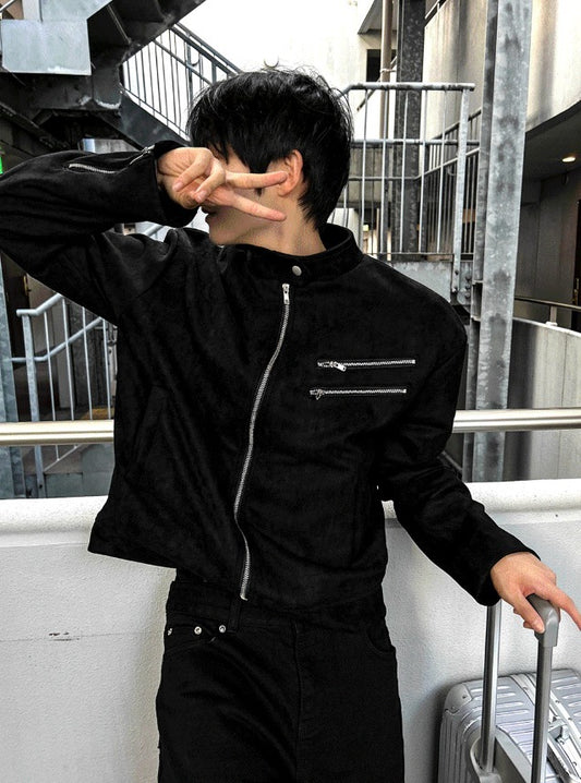 Dutzby Double Zipper Tweed Suede Biker Jacket