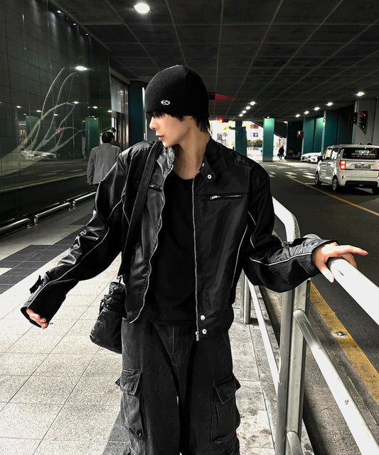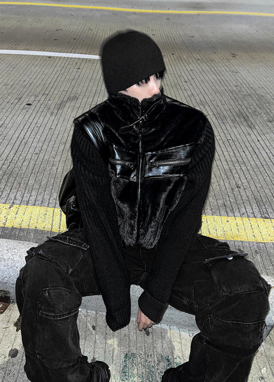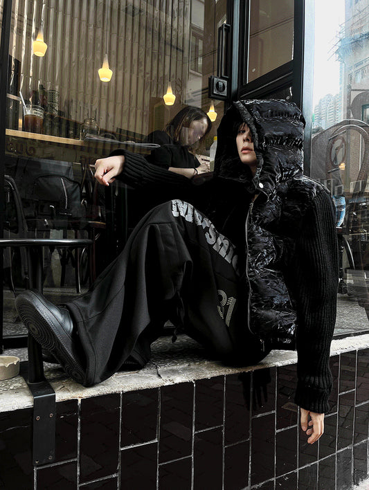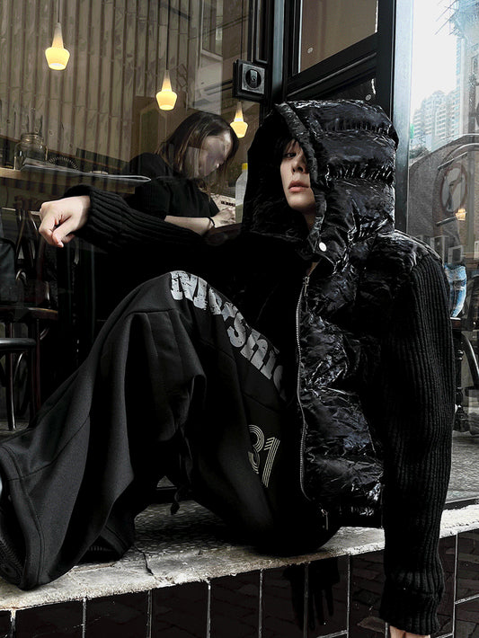 Rivet Crack Wrinkle Crop Padding + Deep Black Knit