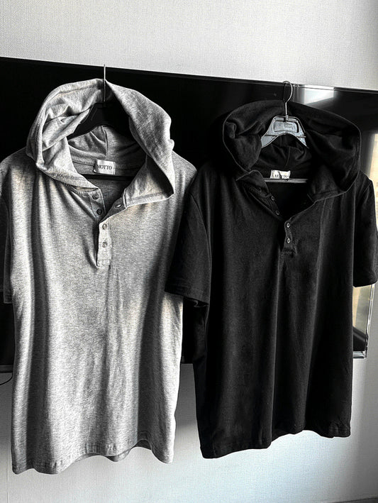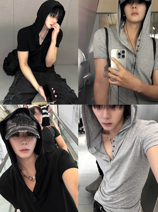 Henley Neck Short-Sleeve Hoodie