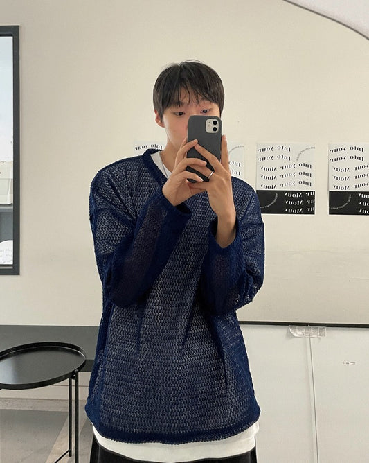 Oversized V-Neck Mesh Knit