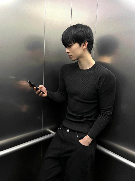 Muscle Fit Raglan Ribbed Knit